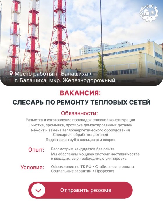 БКС открывают вакансию для настоящих мастеров своего дела. Мы ищем умелых и ответственных специалистов, готовых поддерживать в идеальном состоянии сердце городского теплоснабжения — котельные, ЦТП и тепловые сети.