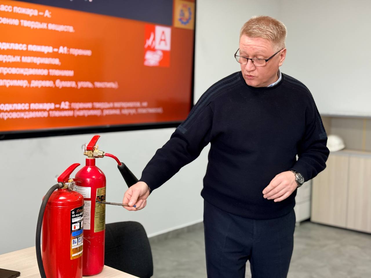 С безопасности. Сотрудник БКС провёл инструктаж и полноценную лекцию по пожарной безопасности. Школьникам объяснили классы пожаров и показали, каким огнетушителем что тушить — от бумаги до электрощитовой.